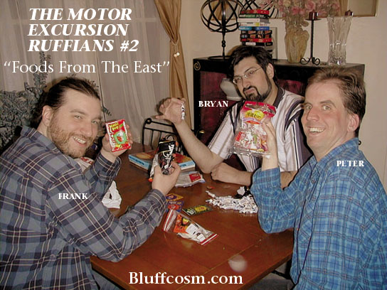 Sunday 4/6/03 8:57 PM -- Lots of stuff going on. First of all, I had done web-forwarding for Bluffcosm.com, sending it to a sub-page on Obliviana.com. This past Thursday, I set the DNS entry back to the way it was. Now, again, Obliviana.com and Bluffcosm.com go to the same place. And now I have to make a new homepage to accomodate this change. And I need to make some serious decisions about my whole creative life and endeavors. This past Friday and Saturday (4/4-4/5) I recorded "The Motor Excursion Ruffians #2", with Peter Litkey and Bryan Cassidy. We did over eight hours of recording, driving from New Jersey to Virginia, and then going on some adventures there in Virginia. I think I can edit it down to make a really good hour or two of Bluffcosm insanity. On the technical front, I still have a ways to go before I get a 24/7 Shoutcast stream going. I am working with my webhost to allow for easy MP3 streaming, though. I'm thinking about doing an audio "Bluffcosm News Brief". This will hopefully fit into my streaming plans. Four episodes of "The Overnightscape" are now done and online. I'm really happy with this new show format, and I plan on continuing with it. I was happy to hear that Winter of starbuckseverywhere.net listened to the show after I sent him an email talking about how I had mentioned his site on the show. Way back when, there was very briefly a Bluffcosm fan site. I think I have some archives of it, which I plan on making available here soon. The "blog interview" below has been added to. I'll put the full thing also online here soon. Oh, also in Virginia I bought a bunch of interesting cassette tapes which may hold audio treasures! Time will tell...
